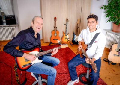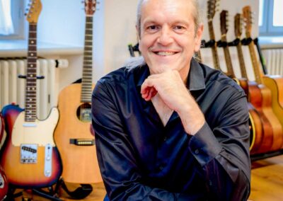 Als ausgebildeter Gitarrenlehrer und erfahrener Musiker auf der Bühne und im Studio liegt mir die individuelle Förderung jedes einzelnen Schülers am Herzen. Mein Unterricht ist locker, freundlich und wertschätzend – gleichzeitig professionell und praxisorientiert.