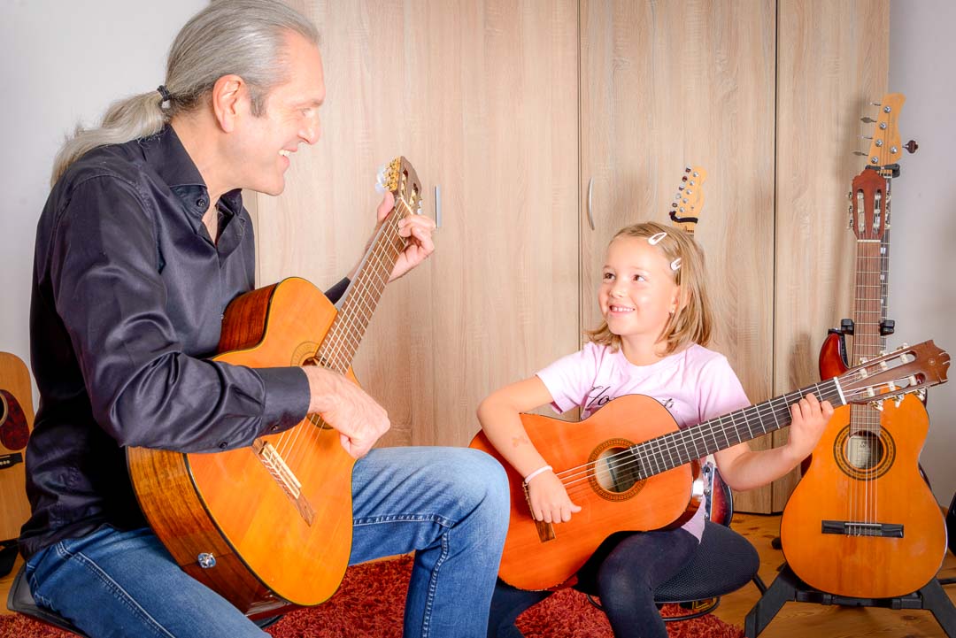 „Ich war erst skeptisch, ob Emma mit 7 schon bereit ist. Markus hat uns in der Probestunde überzeugt – er geht super einfühlsam auf sie ein. Sie liebt ihre Gitarre und übt sogar freiwillig!“