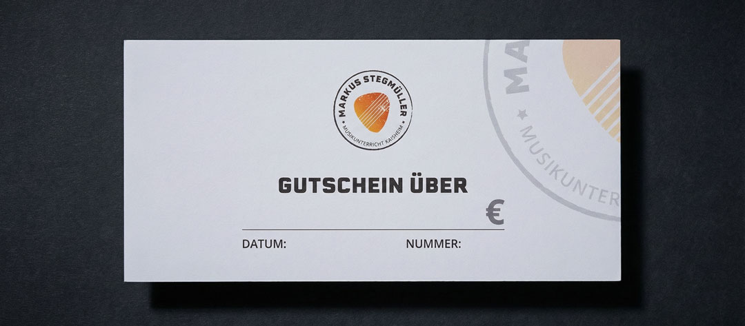 Mit einem Gutschein für Musikunterricht bei Markus Stegmüller schenkst du nicht nur eine schöne Zeit, sondern echte musikalische Entwicklung. Ob Gitarre, Gesang oder Bandcoaching – der Gutschein kann flexibel eingesetzt werden und passt zu jedem Level, vom Anfänger bis zum Fortgeschrittenen.